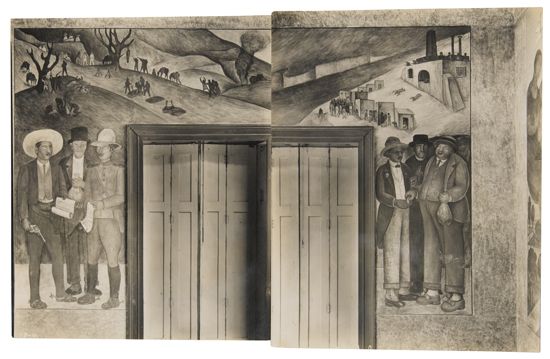 Mural Study diptych (Diego Rivera's depiction of exchange of land and money)
