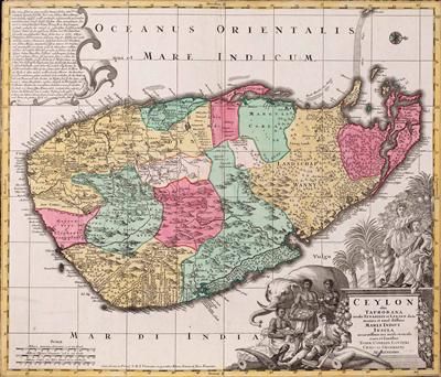 Lankdarte von Ceylon bezeichnet "Ceylon olim Taprobana ..."
