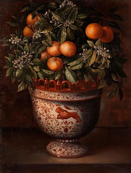 STILL LIFE WITH ORANGE sapling IN A PAINTED