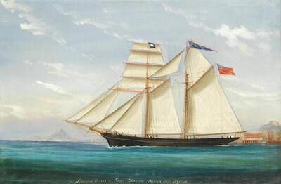 Schooner Thetis of Foewy leaving Naples Bay 1875