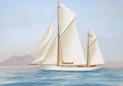 | The racing ketch Xarifa flying the flag of the New York Yacht Club in the Bay of Naples | |