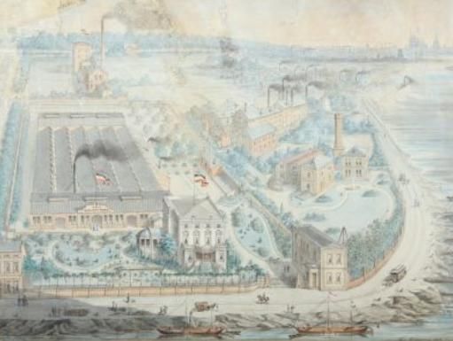 Ansicht der Maschinenfabrik Peter Kyll in Sürth bei Köln
