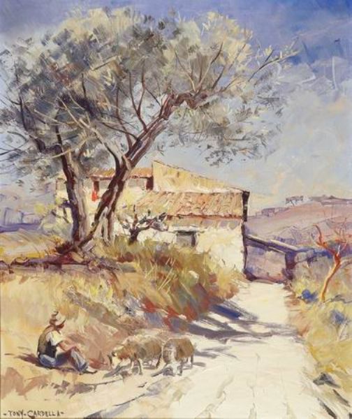 BERGER ET MOUTONS AU BORD DU CHEMIN