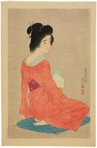 A dai oban tate-e print entitled Nagajuban (Long Undergarment), dated 1929, published by Kawaguchi, signed Kotondo saku | |
