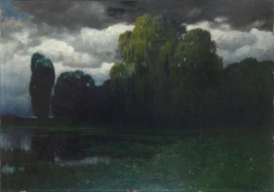 | Aufziehendes Gewitter - Wasserlandschaft mit großer Weide | |