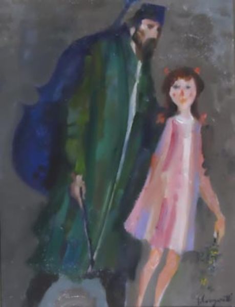 MUSICANTE IN VERDE E BAMBINA ROSA