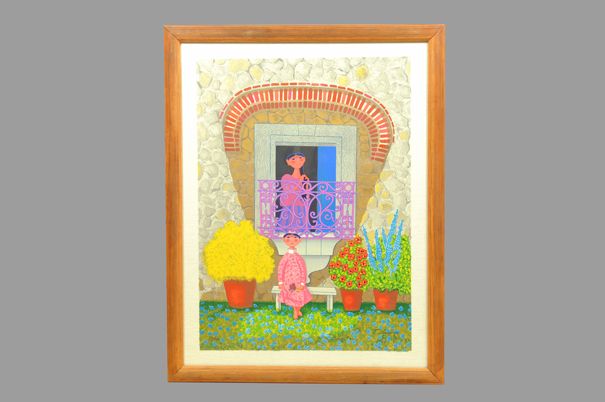Niñas en balcón y jardín. Serigrafía, serie 30/120.