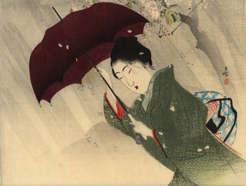 Dame au parapluie pourpre