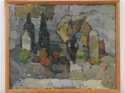 still life with flaskor and frukt