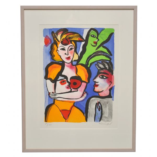 | Komposition bestående av bland annat kvinna, man och orm mot blå bakgrund. | |
