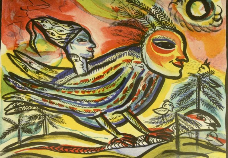 komposition med fågel
