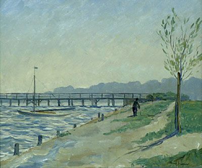 | ´´Landungssteg an der Trave bei Travemünde´´, so rückseitig mit Bleistift betitelt und dat. 1912. | |