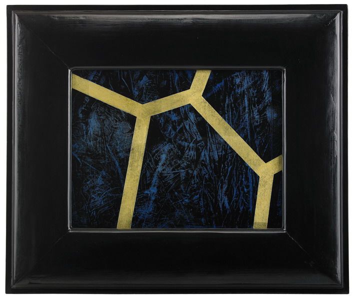| Oil and gold leaf on glass framed in black lacquered frame | |