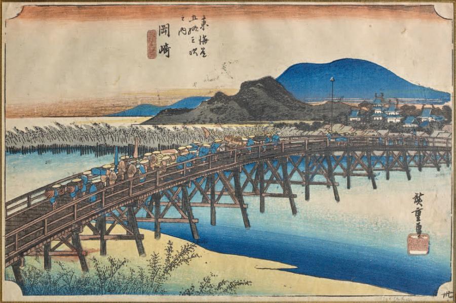| Oban tate-e of the series Tokaido gojusan tsugi no uchi, the fifty-three stations of Tokaido, Plate 39, Okazaki, Yahagi no hashi | |