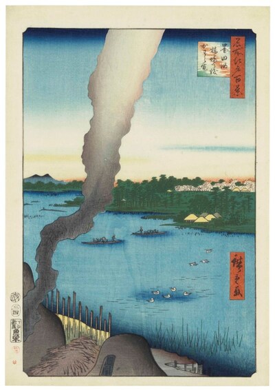 | SUMIDAGAWA HASHIBA NO WATATASHI KAWARAGAWA (HASHIBA FERRY AND TILE KILNS, SUMIDA RIVER), FROM THE SERIES MEISHO EDO HYAKKEI (ONE | |