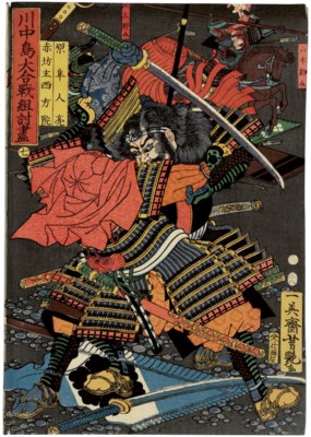 | Two warrior prints from the series One-To-One Combats at the Great Battle of Kawanakajima | |