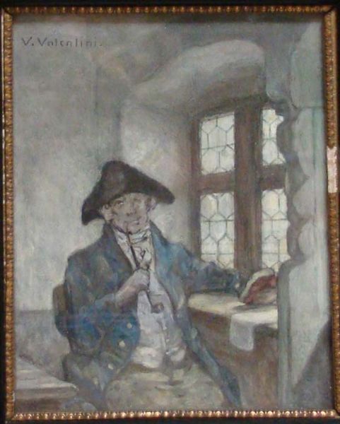 In Fensternische sitzender Pfeifenraucher mit Buch