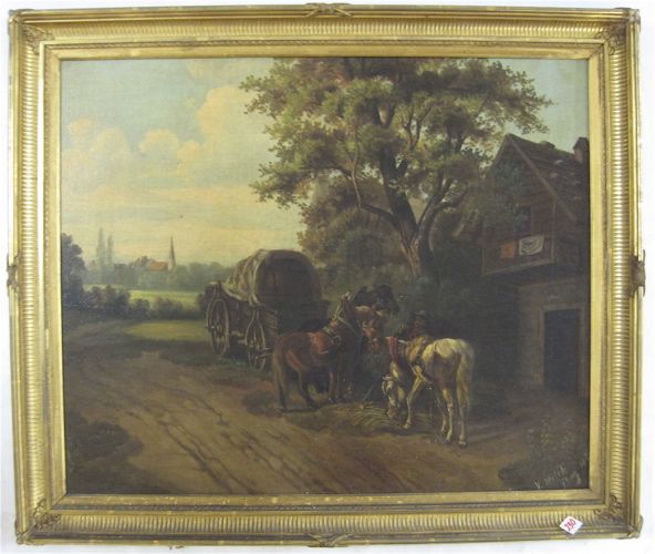 Landscape with wagon, horses and driver alongside country road