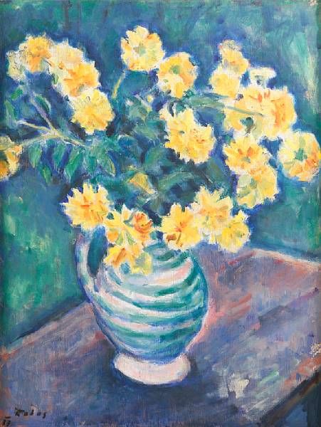 Still life with yellow flowers in a vas