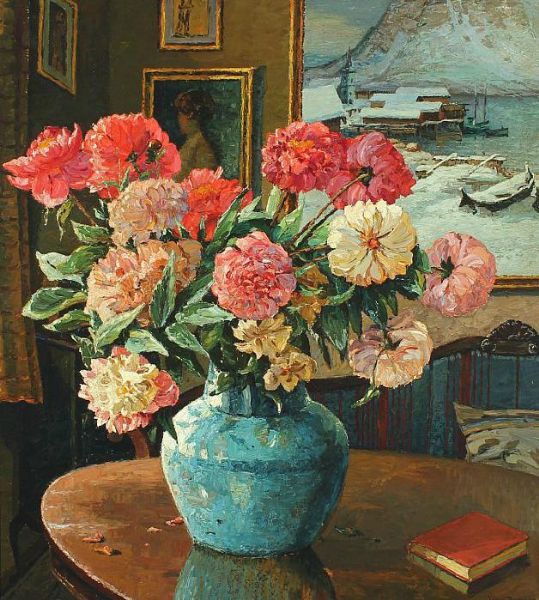 Interior with flowers on a table.