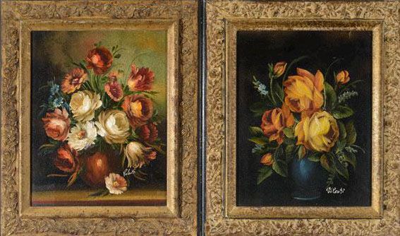 Floral Still Life with Yellow Roses" & "Floral Still Life with Red Vase