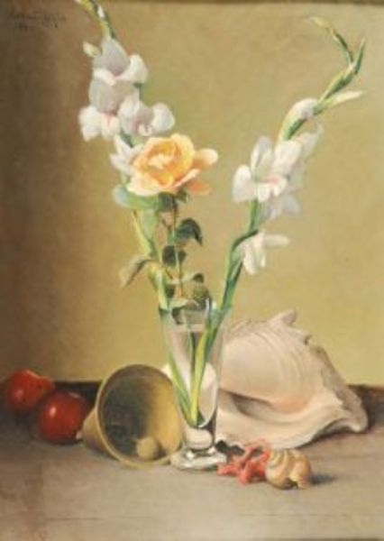 | Natura morta con fiori recisi , conchiglia e campana | |
