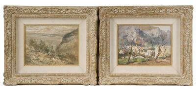 (2) Views of Capri, oil on panel, both signed "V. White" and marked "Capri", in Impressionist gesso frame, linen and gilt liner, under glass, OS: 13 3/4" x 16", OS: 6 3/4" x 9". Fine condition. | |