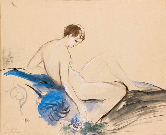 Femme au bouquet bleu