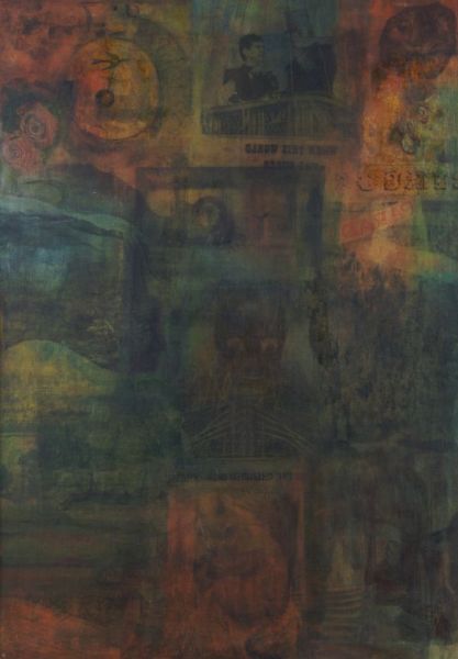 Oil with collage transfer on canvas