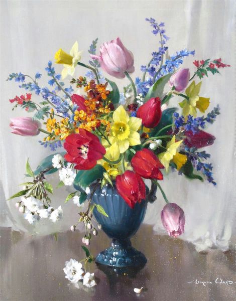 | Still life of tulips, daffodils and other flowers in a vase | |