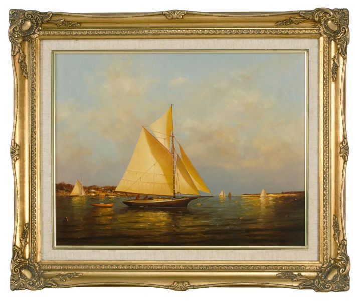 Catboat at sunset