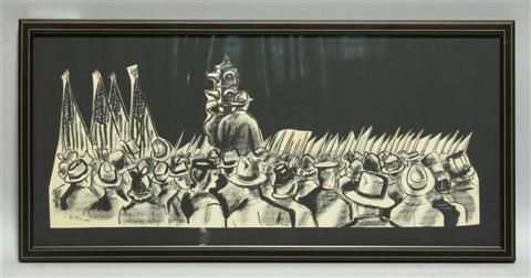 CROWD WATCHING MARCHING SOLDIERS - ARMISTICE