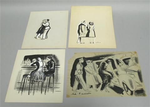 | FOUR DRAWINGS OF MILITARY COUPLES, c. 1945 | |
