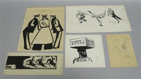 GROUP OF FIVE VARIOUS MILITARY THEMED DRAWINGS, c. 1942