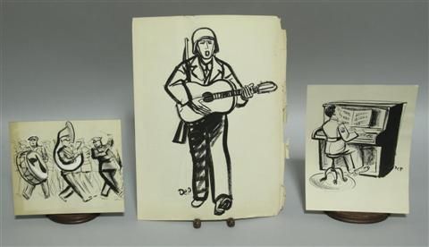 | THREE DRAWINGS OF SOLDIERS PLAYING MUSICAL INSTRUMENTS | |