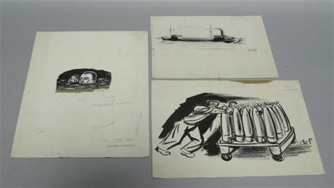 THREE MARINE/NAVY THEMED DRAWINGS, c. 1942