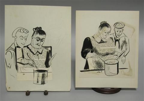 TWO DRAWINGS OF A SAILOR WITH THE COOK, c. 1944