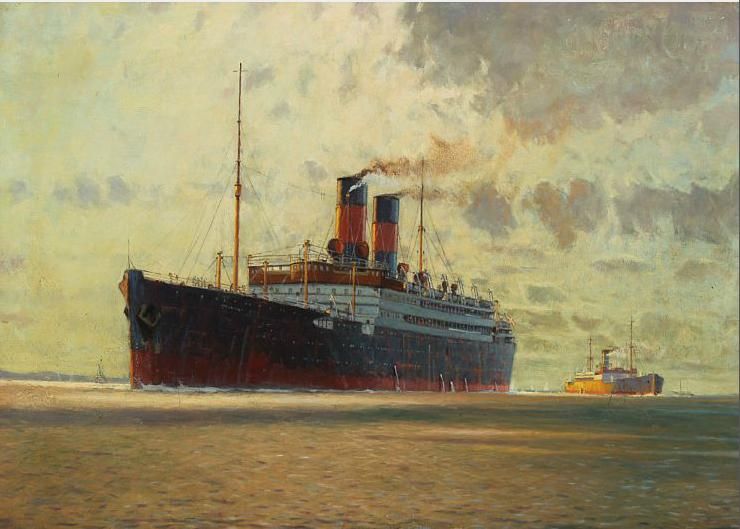 Seascape with steamers