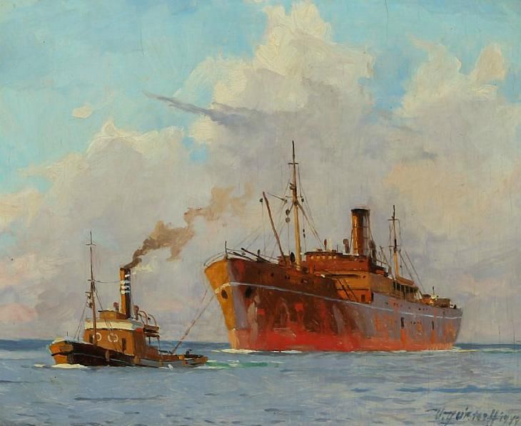 Tugboat and motorship