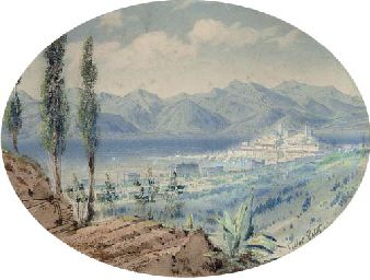| Pencil pen and brown ink and watercolour, with touches of white, oval | |