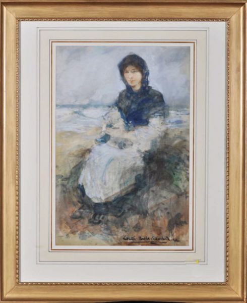 A NORTH SHIELDS FISHERGIRL SEATED ON THE SHORE