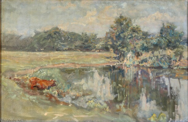 | “Ejby Gadekær”. View from the village pond in Ejby near Copenhagen | |