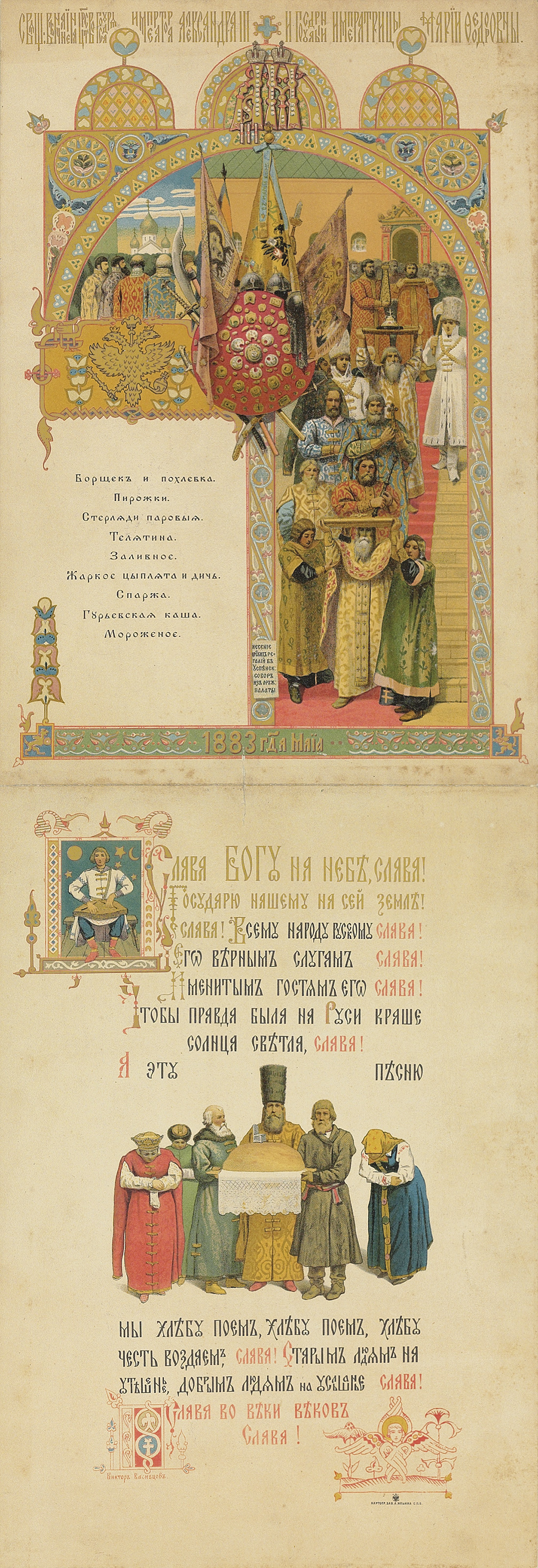 | Menu of the Sacred Coronation of the Sovereign Emperor Alexander III and the Sovereign Empress Maria Feodorovna | |