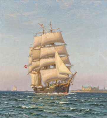 | Seascape with the training ship Georg Stage off the coast of Kronborg Castle | |