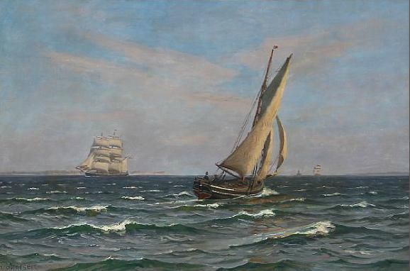 | Seascape with sailing ships and boats off the coast of Gilleleje, Denmark | |