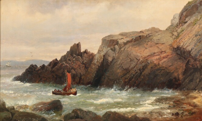 A sailboat near the cliffs of Kullen
