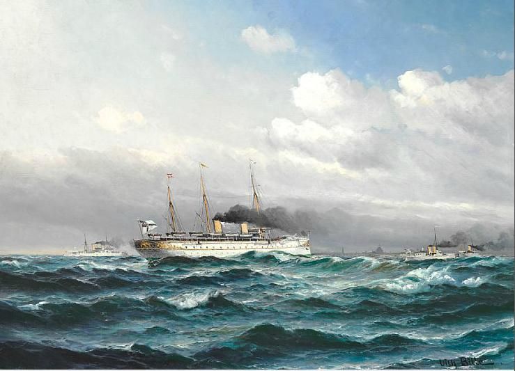 | Seascape with the Imperial German yacht SMY Hohenzollern outside the harbour of Copenhagen. | |