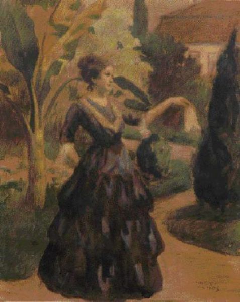 ECOLE HONGROISE FEMME DANS UN JARDIN