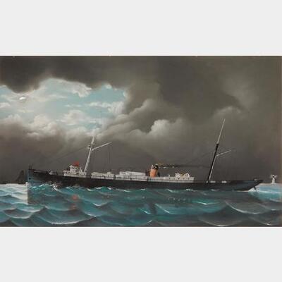 Vincent D. Nickerson (American 1844-1910)- Great Lakes Steamer in Moonlight- pastel on cardboard with inset abalone, 1890, signed V. D. Nickerson 90 lower right. 17 3/4 x 29 1/2'' | |