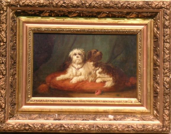 LOYAL COMPANIONS SEATED ON A RED PILLOW